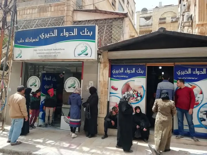 تدعم منشأة بنك الدواء الخيري/ حي الفرقان عن طريق تبرعات مادية لتأمين الدواء والعلاج و جانب من النفقات المالية لعملاء البنك من المرضى المستضعفين ممن تضرروا بسبب الحرب بالإضافة إلى دعم الجولات الكشفية للمناطق التي هي على حواف الريف وما تتطلبه هذه الجولات من أجور نقل وأجور أطباء متابعين لسير العملية بالإضافة إلى الدعم بالغذاء والدواء لدعم المصابين بتلك النقاط المنسية من حواف الريف في منطقة الشمال الغربي من مدينة حلب